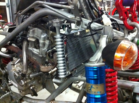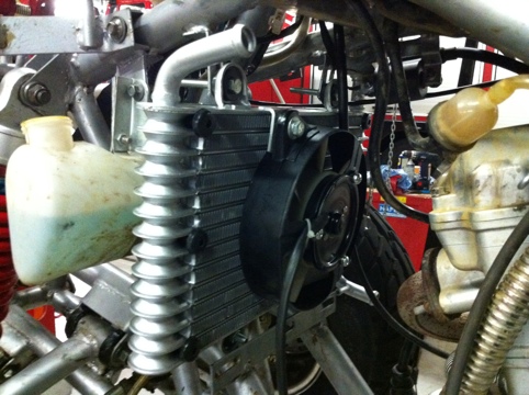 De voorwielen zitten weer terug. Alles loopt lekker. Daarna nog de radiator ingemeten en een beugel gemaakt. Zaterdag weer verder. Maar Wim en ik zijn weer lekker bezig geweest.